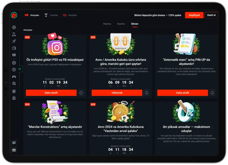 - Pinco mobil istifadə edərək eksklüziv kampaniyalara, bonuslara və promo-təkliflərə çıxış əldə edirsən.