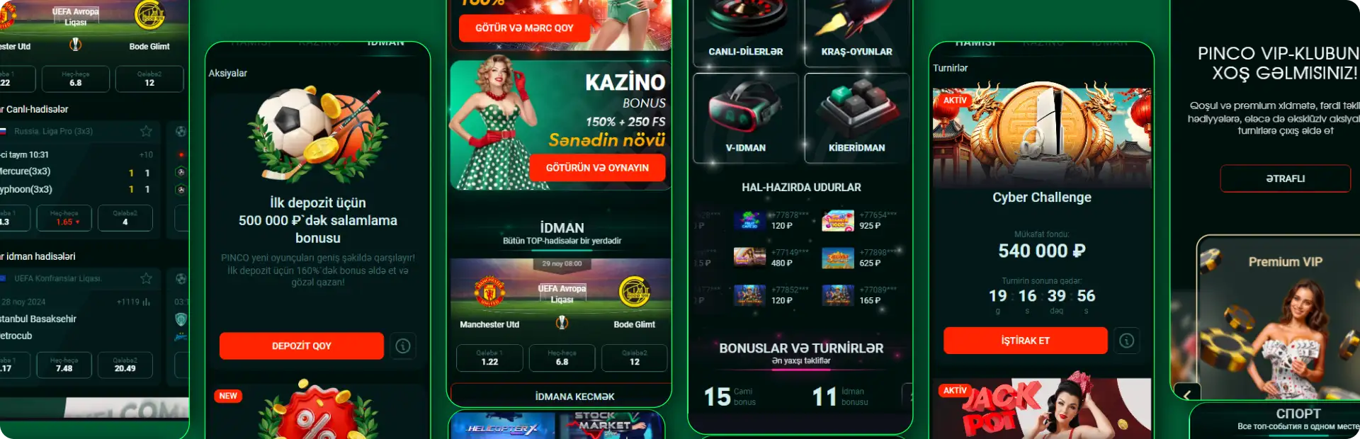 Turnir və aksiyalarda iştirak et. Çox pinco online eksklüziv turnirlərə və aksiyalara giriş imkanı verir, burada dəyərli hədiyyələr əldə edə bilərsən. Bu tədbirlərdə aktiv iştirak et ki
